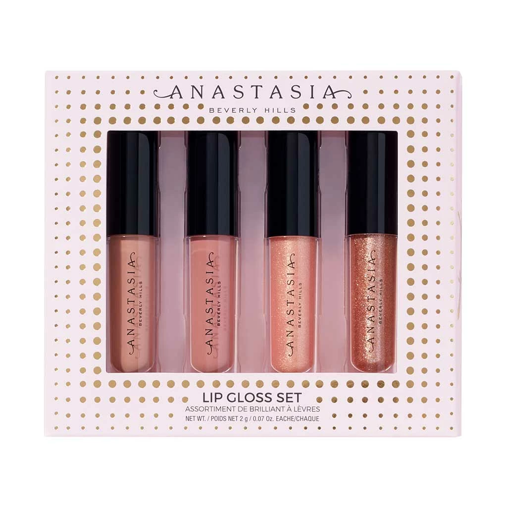 A summer season must-have lip gloss set containing 4 deluxe, full-pigment, shades of lip gloss complete with Anastasia Beverly Hills’ lacquer or sparkle finish