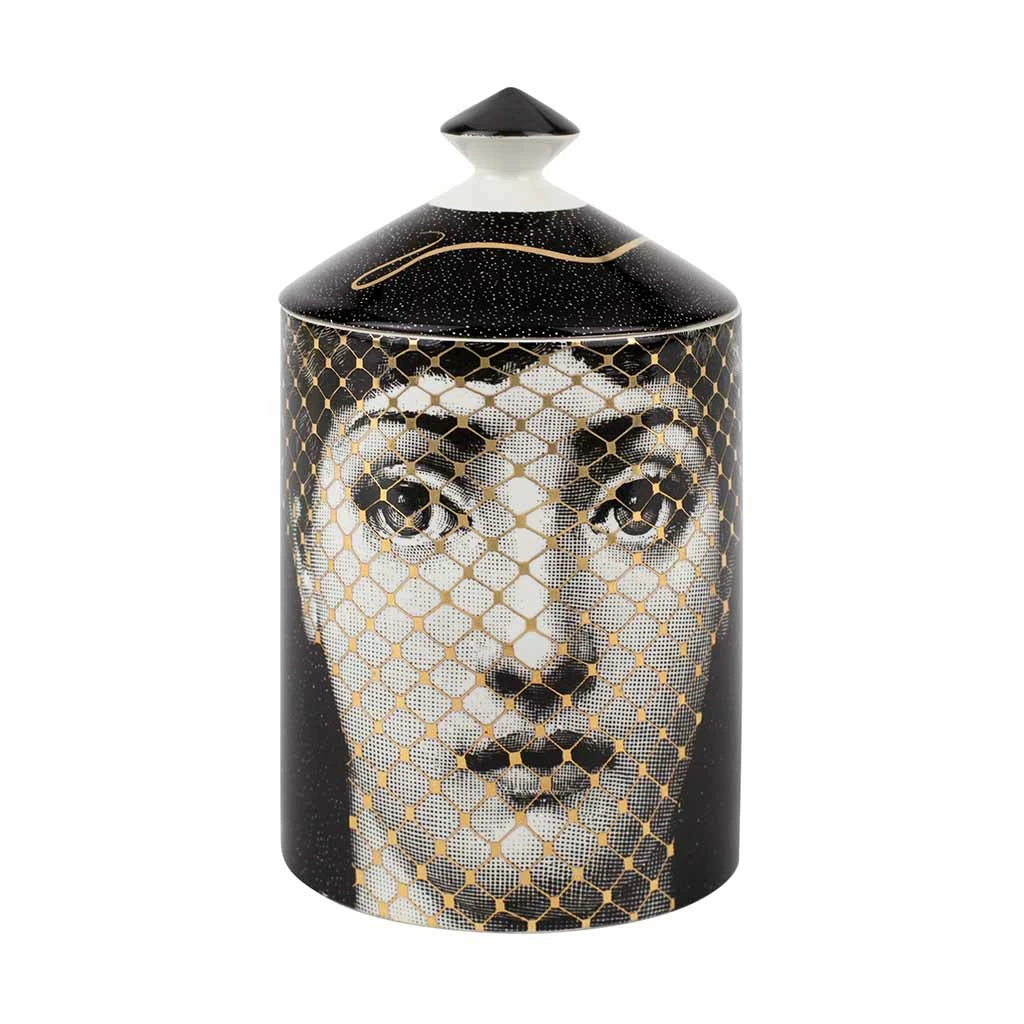 Delightful Italian opulence with the golden detailing on the ever-monchrome muse, Lina Cavalieri, this work of art, fragranced with Fornasetti’s signature Otto bouquet created by master perfumer Olivier Polge. Blending thyme and lavender with orris, cedarwood and birch will fill the atmosphere of your room with decadence.
