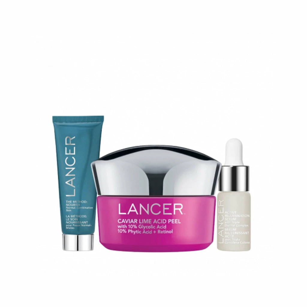 Dr. Lancers most powerful solution for dull, lackluster skin, this advanced peel is formulated with 10% Glycolic Acid, 10% Phytic Acid, 10% Retinol and Caviar Lime extract. This potent AHA blend works immediately to exfoliate and remove surface cells, visibly improving pores, fine lines and wrinkles, and brightening the skin. Pineapple and Papaya fruit enzymes (also rich in AHAs) help improve rough skin texture and even the skin tone. After 1 use, skin appears brighter, smoother, softer and more youthful.The Method: nourish Normal-Combination Skin (0.25 fl. oz. / 7.5 ml)