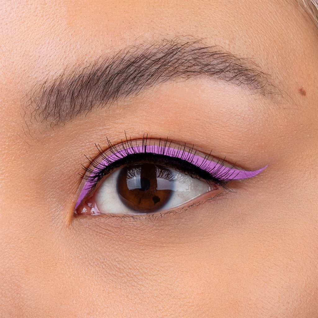 Shake before use. Use the liner’s fine brush tip to shape the eye. Create dainty winged liner, thicker lines for mega wings, or layer shades for a color-combo masterpiece.