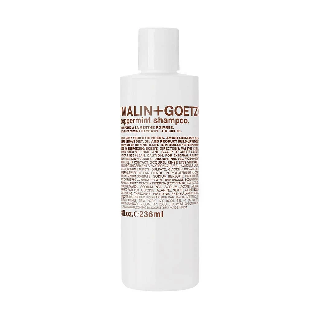 Malin+Goetz signature foaming shampoo synthesizes natural peppermint extract with amino acid-based cleansing agents. Effectively purifies and balances all hair and scalp types without drying, stripping or leaving buildup. Mildly foaming, residue-free formula leaves hair soft and scalp conditioned. Natural color.How to use: