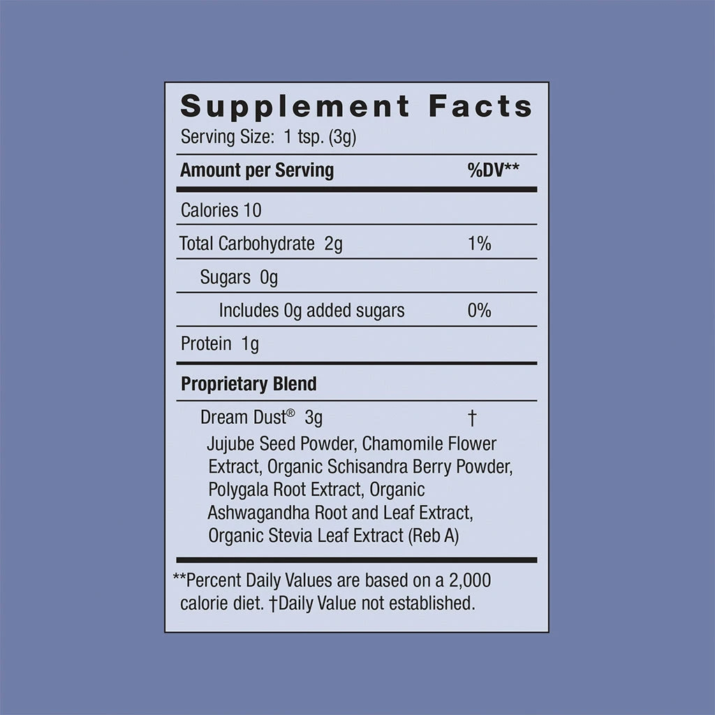 Dream Dust is a tranquil blend of Ashwagandha, Jujube, Polygala, Chamomile & Schisandra that targets stress for relief of tension to promote deep, tranquil rest.*