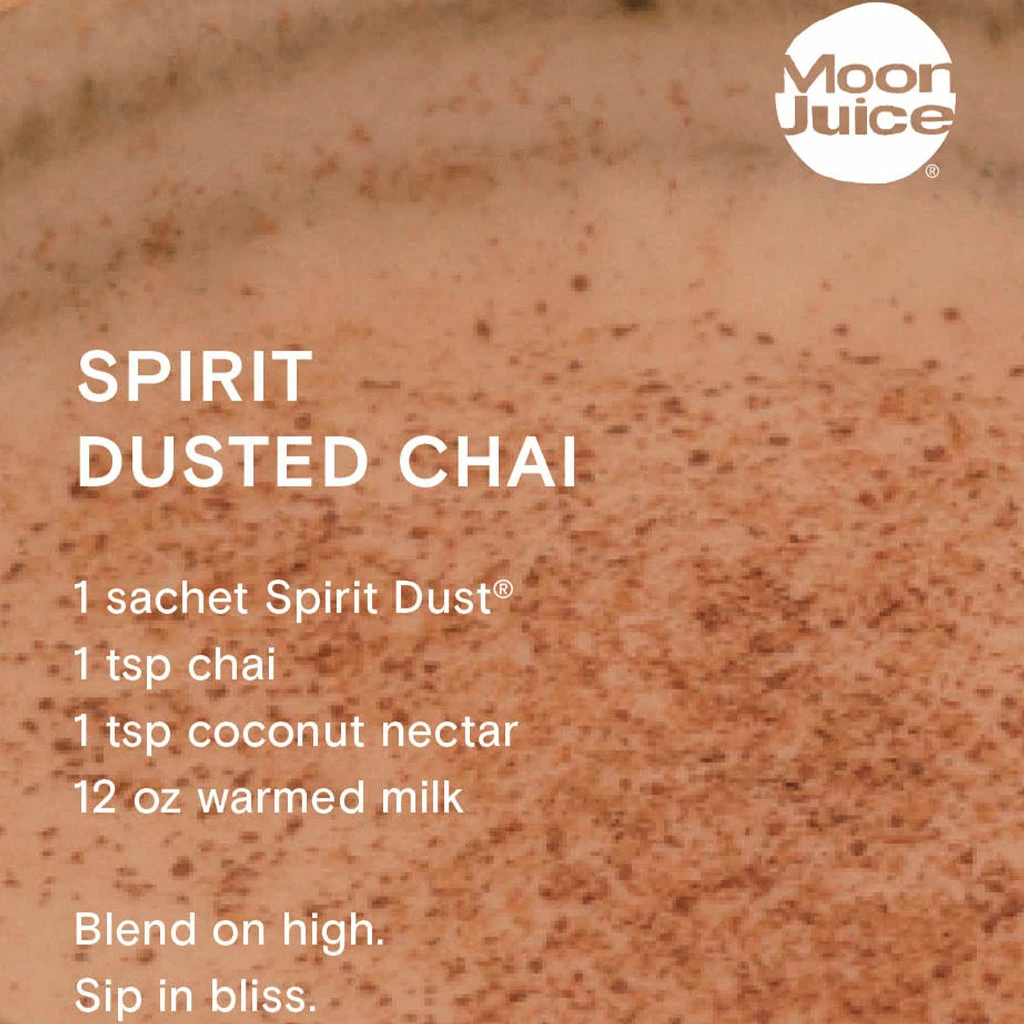 Spirit Dust is a blissful adaptogenic blend of Reishi, Ashwagandha, Astragalus, Mimosa Bark, Dan Shen, Longan Berry & Goji that targets stress for relief of tension and irritability to calm and brighten mood.*