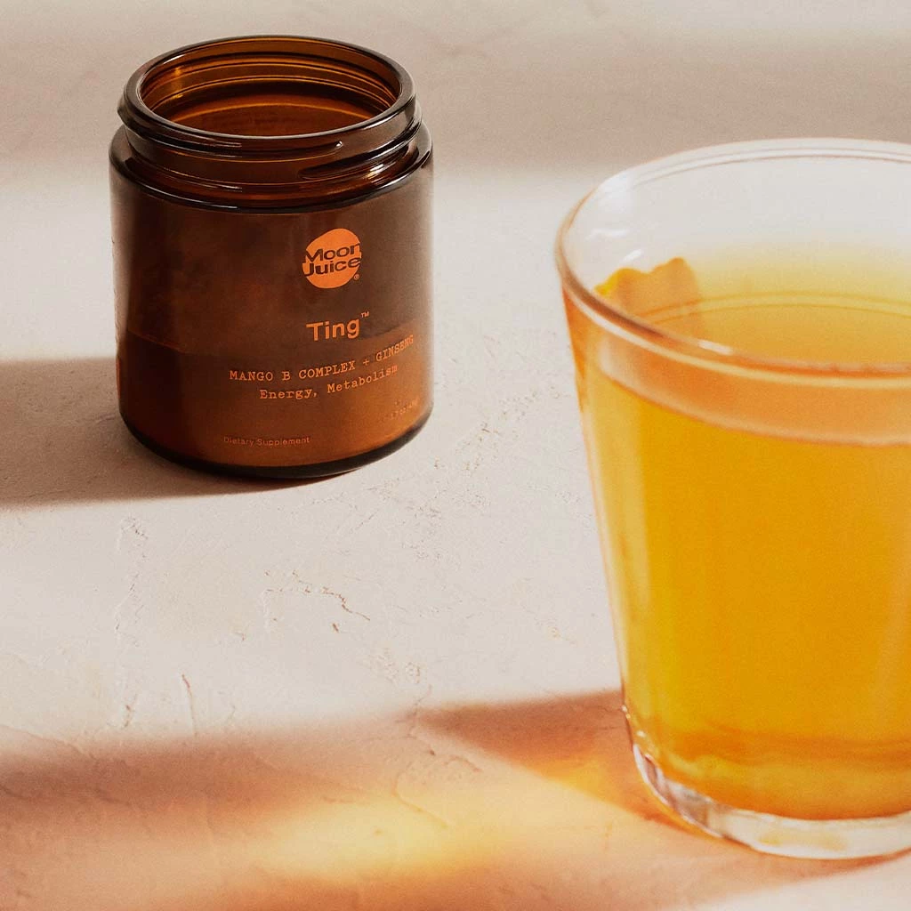 Ting is your non-stim wake up call. B vitamins are crucial for energy, metabolism, and mood. Moon Juice’s B Complex, extracted from organic Tulsi and Guava, provides cofactors to help convert fat, protein, and carbs into cellular currency/ATP*. Methylated B12 supports healthy serotonin levels and Adaptogenic Ginseng brings the calming energy. Instantly dissolves in water, tastes like mango, and sweetened with organic monk fruit.