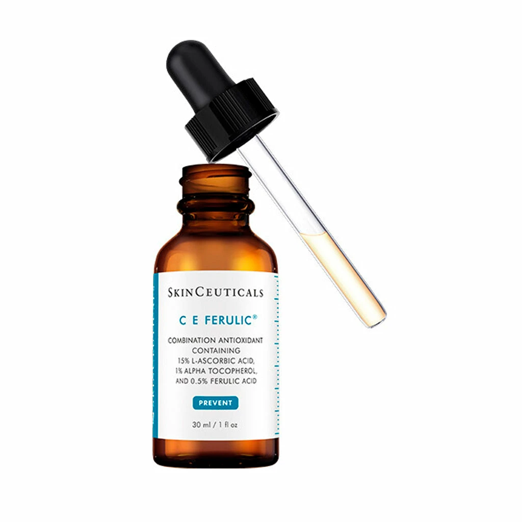 C E Ferulic features a synergistic antioxidant combination of 15% pure vitamin C (L-ascorbic acid), 1% vitamin E (alpha tocopherol), and 0.5% ferulic acid to enhance protection against environmental damage caused by free radicals that can contribute to atmospheric aging. C E Ferulic is now proven to reduce combined oxidative damage generated by UVA/UVB rays, ozone pollution, and diesel engine exhaust by up to 41%. In addition to antioxidant protective benefits, C E Ferulic improves signs of aging and photodamage, the appearance of lines and wrinkles, and the loss of firmness, while brightening skin’s complexion.