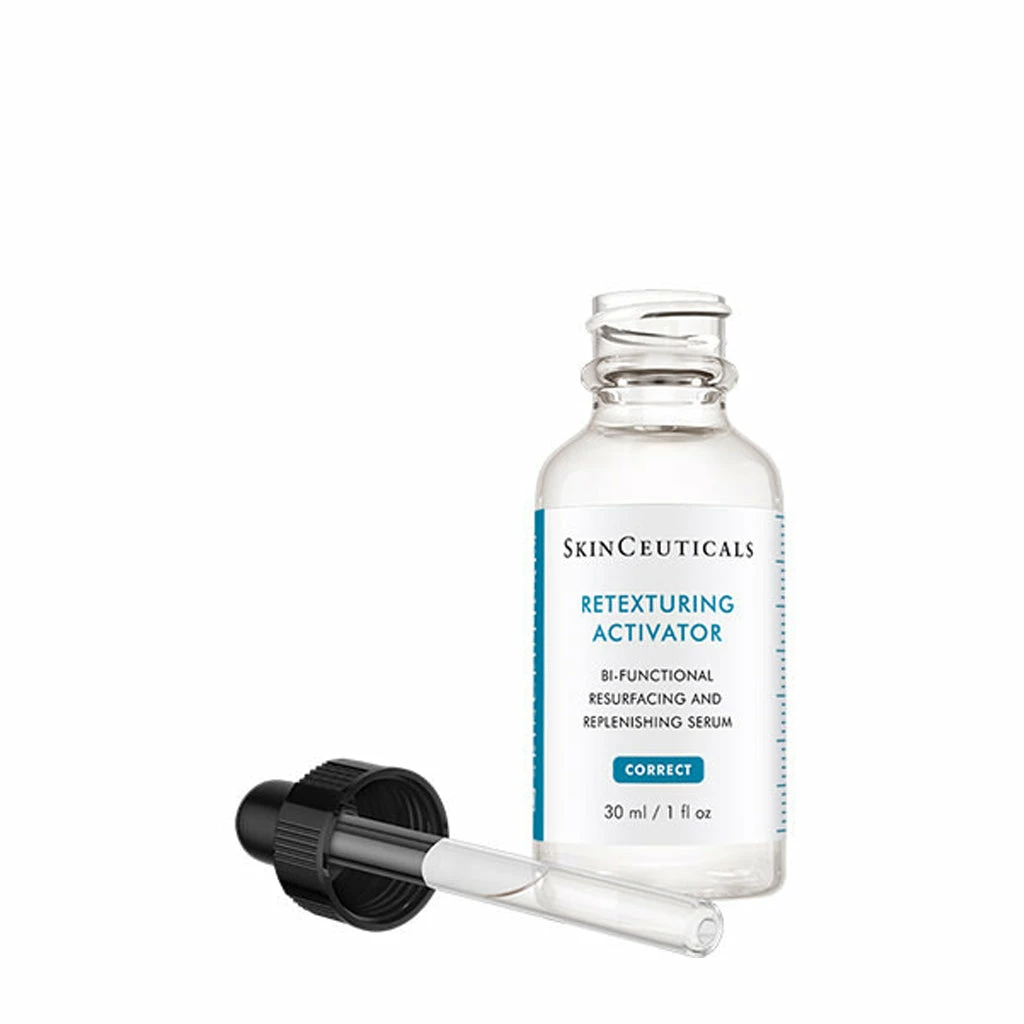 Retexturing Activator is a revolutionary replenishing and resurfacing serum that helps reinforce the skins barrier for healthier, more radiant skin. Using patented technology, this unique serum is highly effective in promoting proper exfoliation while optimizing the skins amino acid supply to reinforce the external barrier. Formulated in an efficient oil-free delivery system suitable for all skin types to replenish and exfoliate skin for noticeably soft, smooth skin texture. This oil-free serum has the resurfacing power of daily 20% glycolic acid treatment.