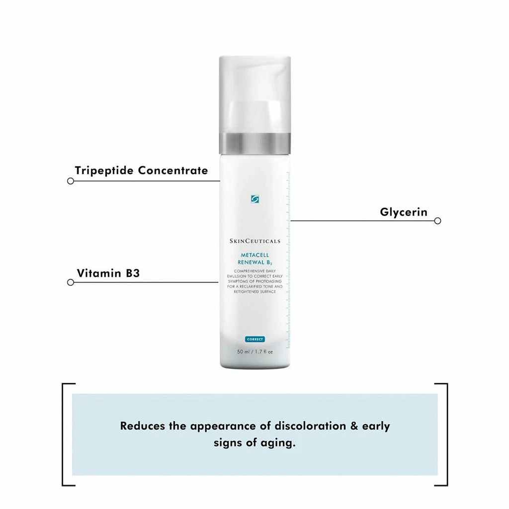 SkinCeuticals Metacell Renewal B3 is designed to target, repair and prevent the visible signs of photo-aging. A 5% concentration of niacinamide diminishes hyperpigmentation while peptides and glycerin firm skin and smooth expression lines and deep wrinkles. Amino acids enhance collagen production for skin that is radiant, renewed and revitalized.