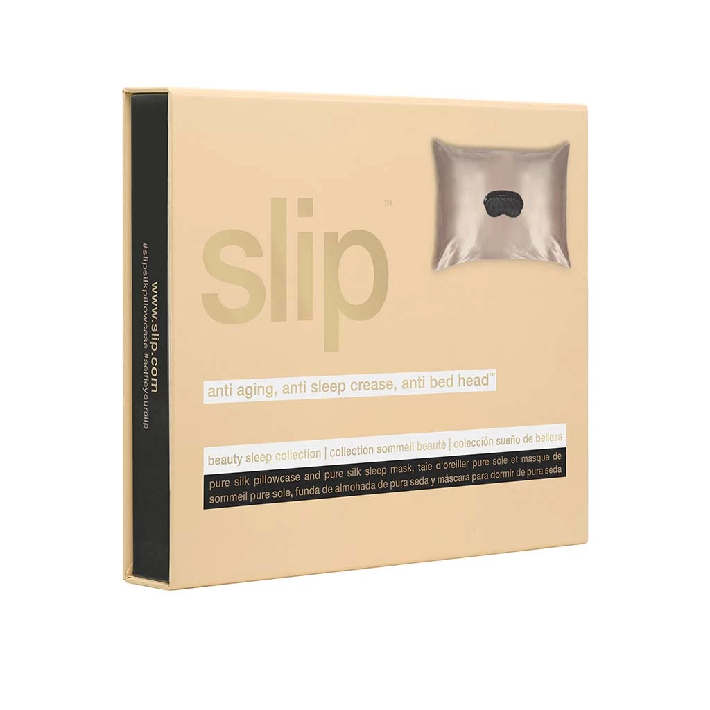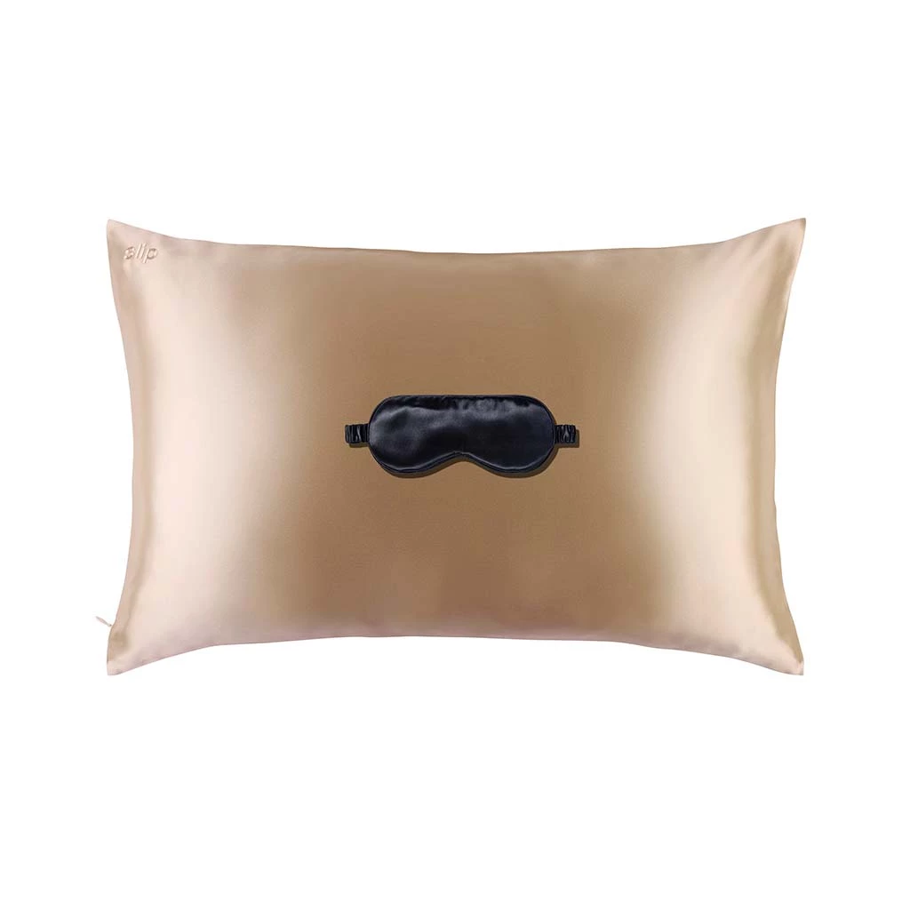The ultimate duo. This luxurious gift set including a caramel pure slipsilk pillowcase and black slipsilk sleep mask will have you dreaming in no time.