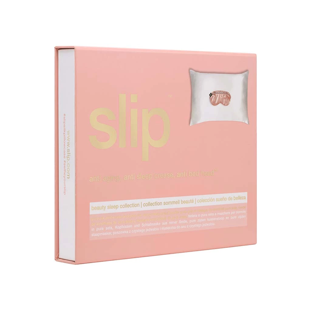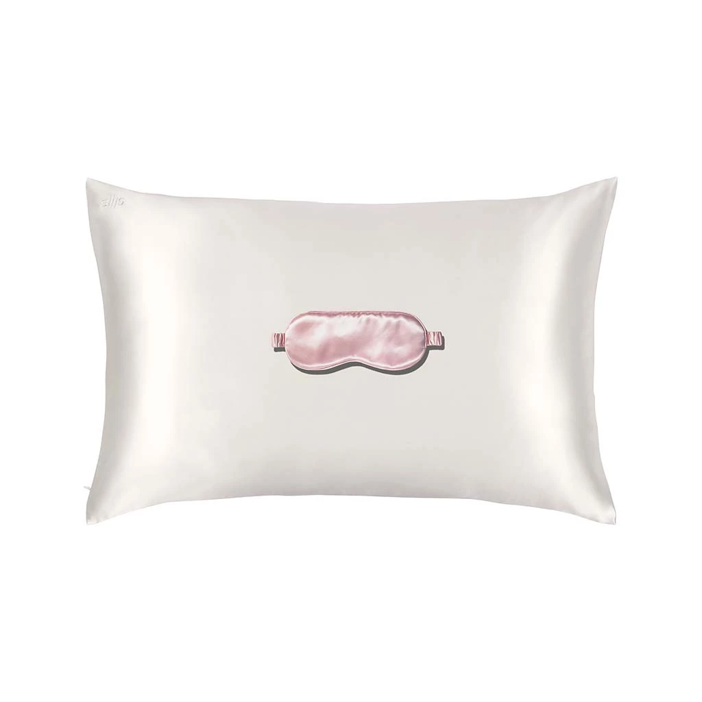 The ultimate duo. This luxurious gift set including a white pure slipsilk pillowcase and pink slipsilk sleep mask will have you dreaming in no time.