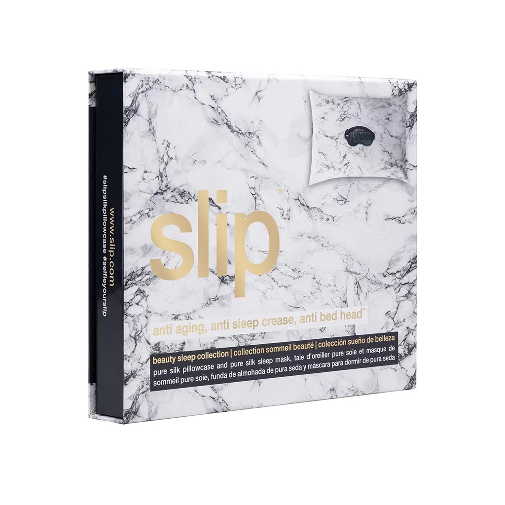 The ultimate duo. This luxurious gift set including a marble pure slipsilk pillowcase and charcoal slipsilk sleep mask will have you dreaming in no time.